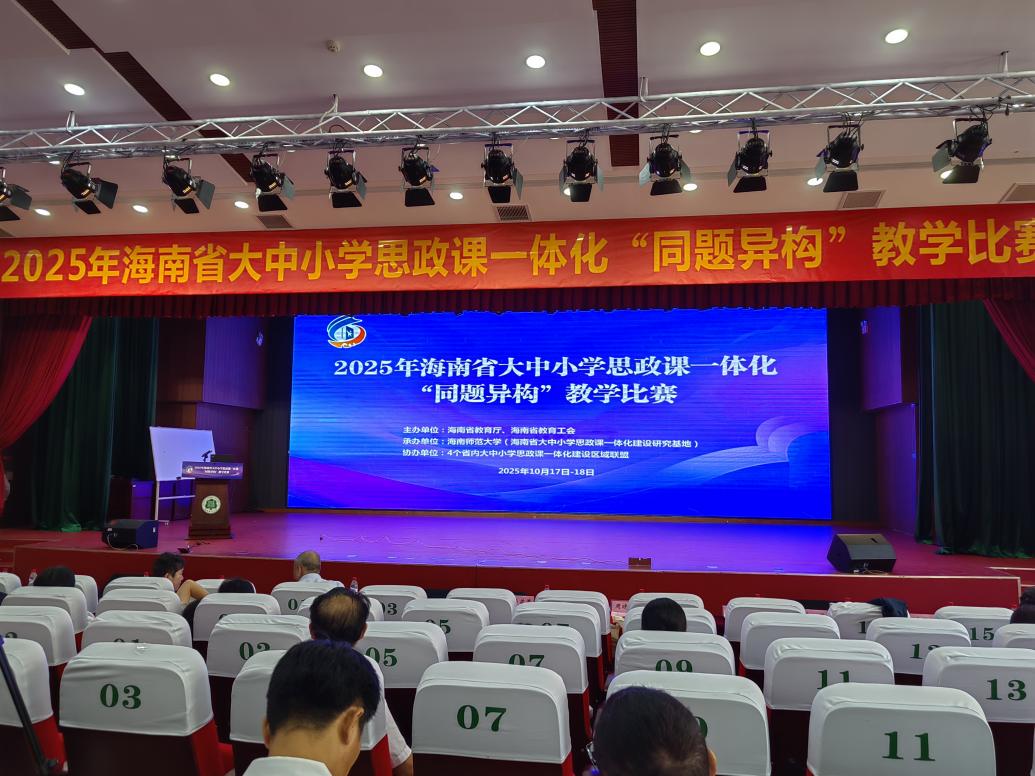 10月17日至18日,2025年海南省大中小学思政课一体化“同题异构”教学比赛在海南师范大学举行。全省4个大中小学思政课一体化区域联盟选派12支代表团队参赛,48名思政课专职教师同台竞技。这是我省举办的第二届教学比赛,由海南省教育厅、省教育工会主办。